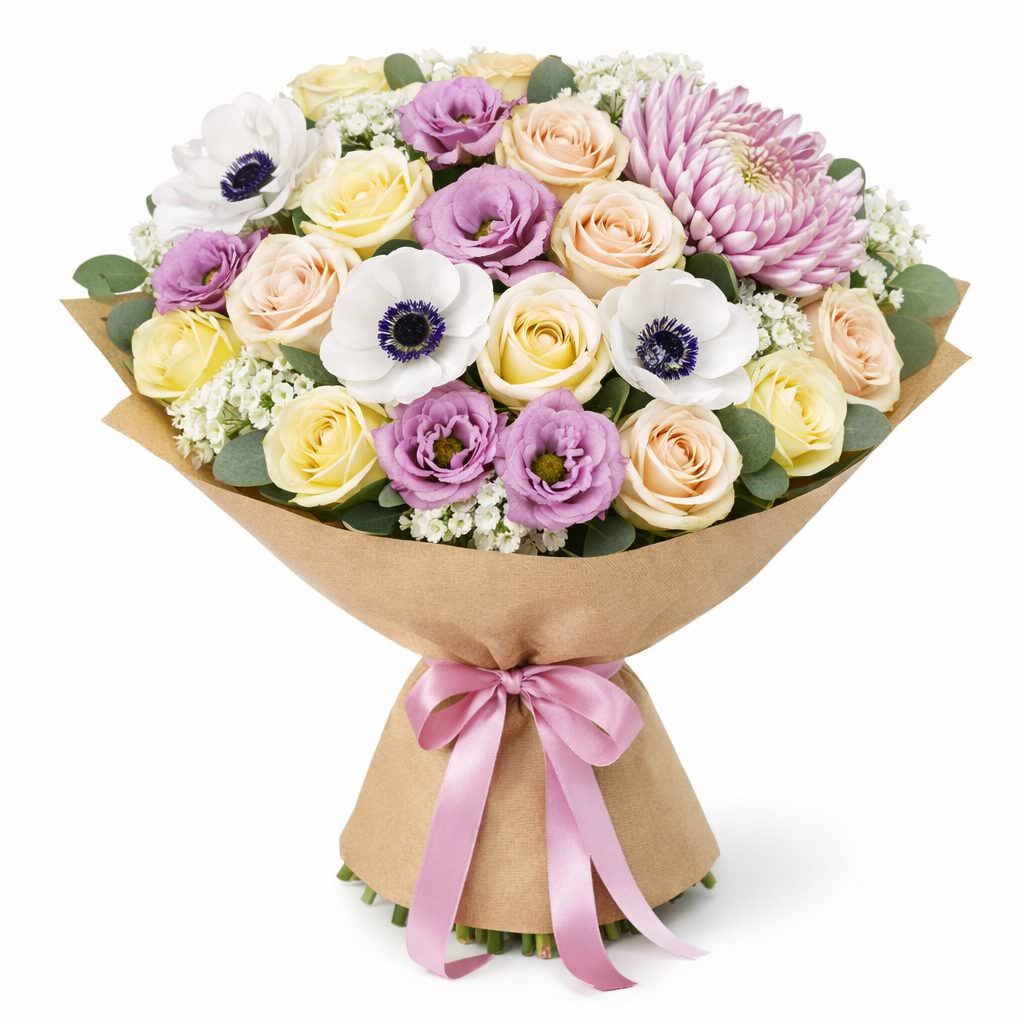 | Состав | Маттиола, Эвкалипт, Розы, Кустовые розы, Хризантемы, Анемоны, Эустомы |