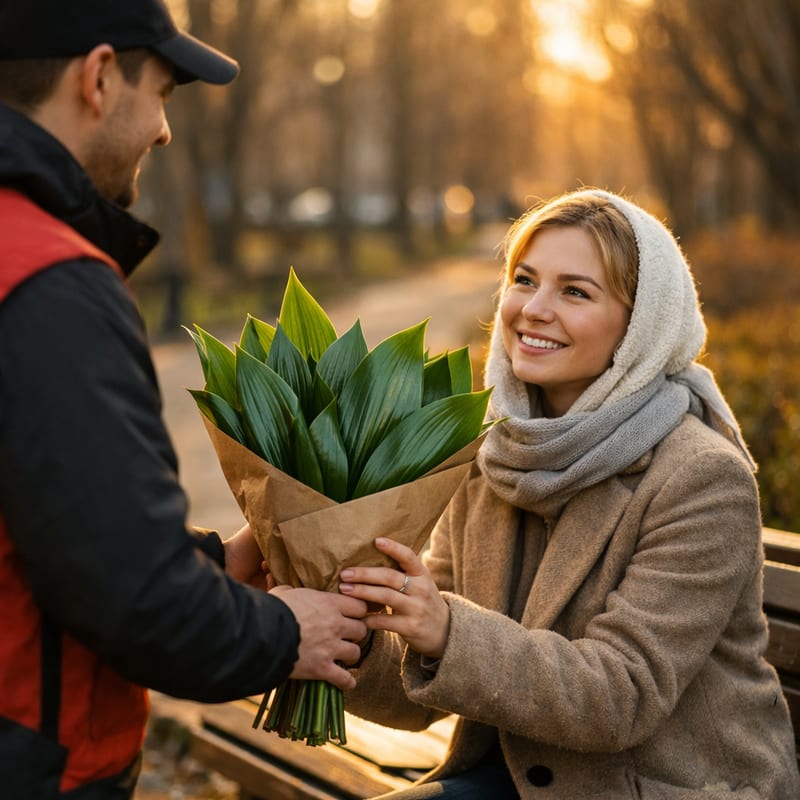 Букеты с аспидистрой — самый «структурный» вариант: длинные тёмно-зелёные глянцевые листья 30-50 см, идеальный декоративный фон/каркас для пышных миксов. Аспидистра не просто «зелень» — она формирует силуэт букета, делает его «дорогим» и графичным. В витрине «МонаФлора» в Салехарде — букеты с аспидистрой от 2069 руб.: розы + аспидистра, орхидеи + аспидистра, премиум миксы. Трендовые предложения для подарка статусной даме, на корпоратив, для офисной вазы, для свадебного букета невесты в современном стиле. Доставка без доплаты от 500 руб., в течение 2 часов. См. Также с розами, с орхидеями.