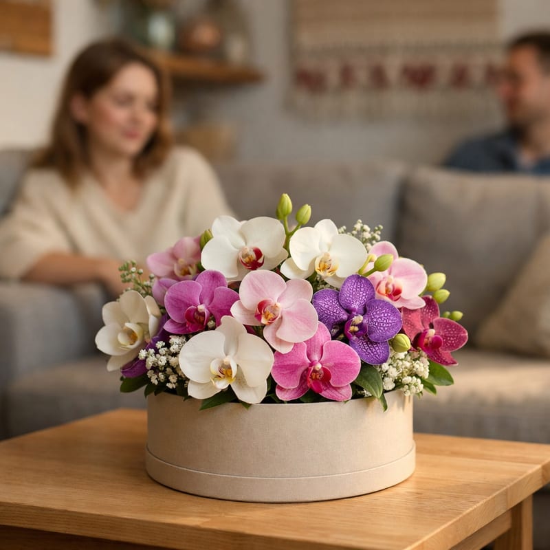 Орхидея в коробке — премиум-подарок «как из глянца»: экзотический цветок Phalaenopsis или Cymbidium в стильной коробке, символ изысканности и статуса. Стойкость 14–28 дней (рекордная среди срезанных). В каталоге «МонаФлора» в Салехарде — 37 готовых композиций с орхидеями в коробке от 2100 руб.: моно белая или фиолетовая Cymbidium, миксы с розами и гипсофилой, премиум с орхидеями в горшке. Современные варианты для VIP-подарка девушке/жене, корпоративного клиента, на юбилей. Доставка бесплатная от 500 руб., в течение 2 часов. См. Также букеты с орхидеями и орхидеи поштучно.